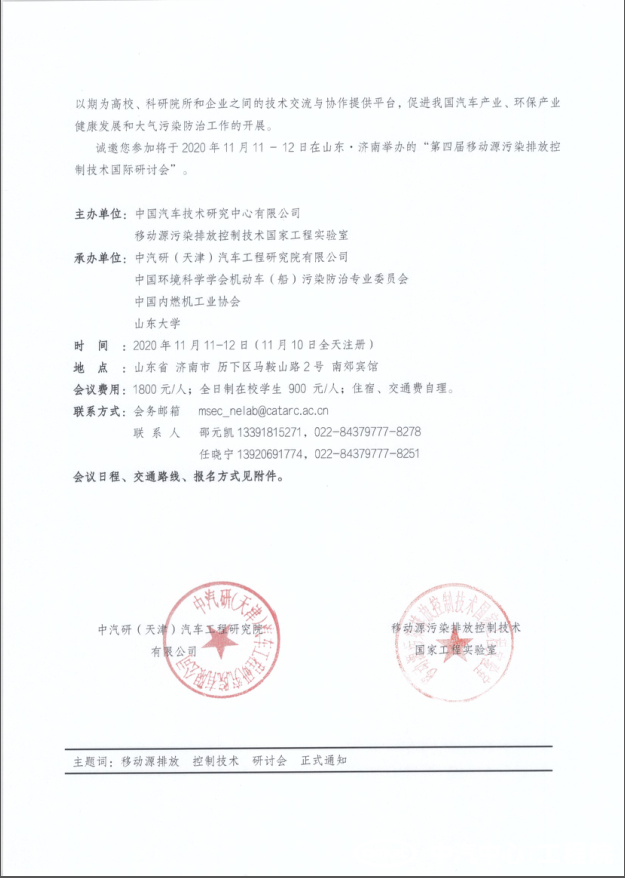 第四屆移動(dòng)源污染排放控制技術(shù)國(guó)際研討會(huì)通知