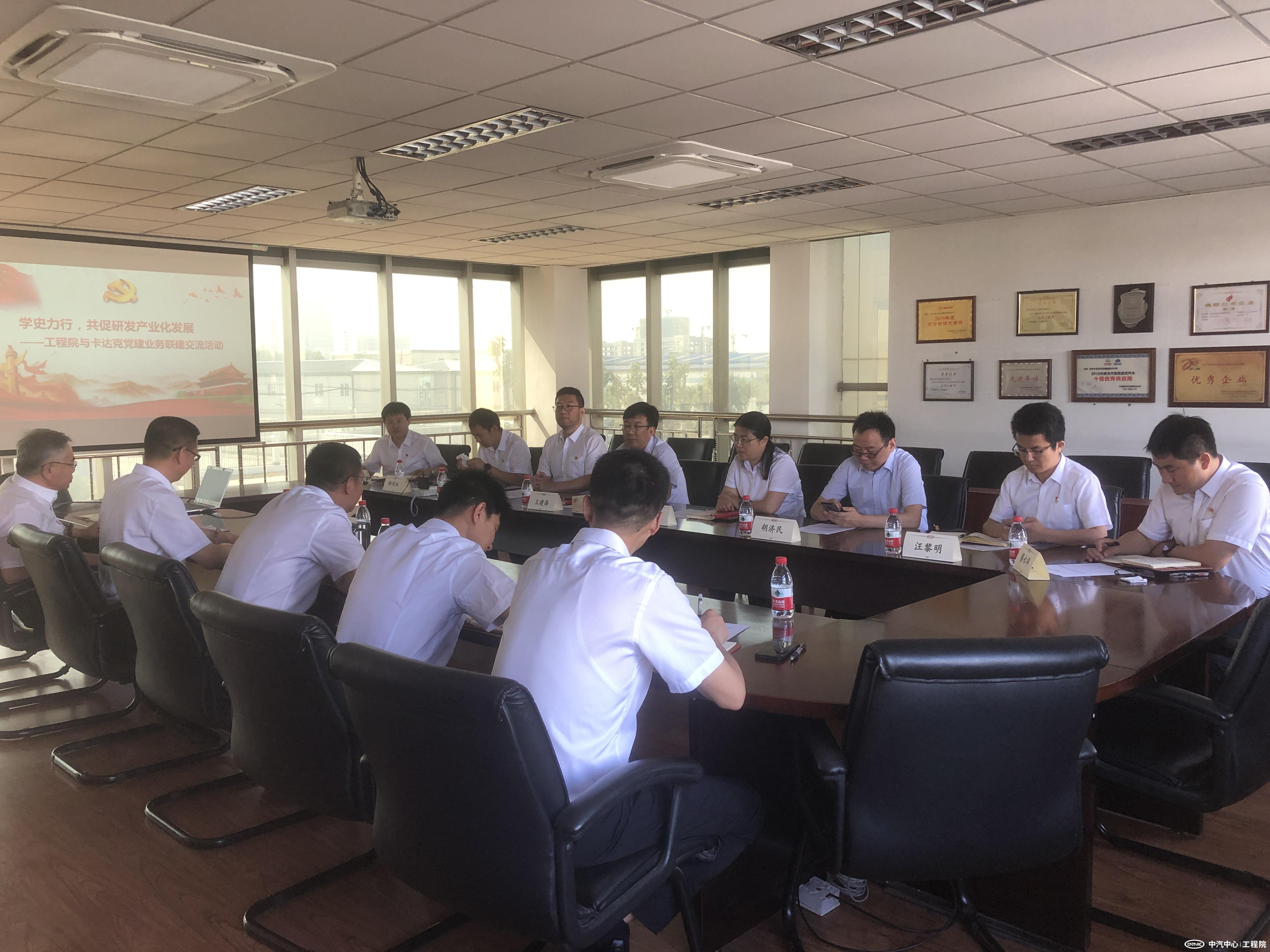 為加強(qiáng)中心內(nèi)部院所間黨建與業(yè)務(wù)聯(lián)建交流,打通業(yè)務(wù)壁壘,搭建合作橋梁,切實(shí)做到以高質(zhì)量黨建引領(lǐng)高質(zhì)量發(fā)展,6月11日,中汽研(天津)汽車工程研究院有限公司(簡(jiǎn)稱“工程院”)與天津卡達(dá)克汽車高新技術(shù)有限公司(簡(jiǎn)稱“卡達(dá)克”)組織開(kāi)展黨建與業(yè)務(wù)聯(lián)建交流活動(dòng)。工程院黨委書(shū)記、總經(jīng)理王建海,卡達(dá)克黨支部書(shū)記、總經(jīng)理李陸山,及雙方黨組織班子成員、相關(guān)部門人員參加活動(dòng)。