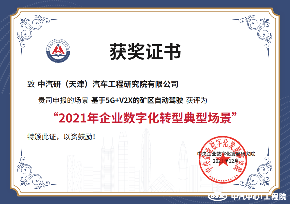 為貫徹落實黨中央、國務院關于加快數字化發展的決策部署,推進企業數字化轉型走深走實,中央企業數字化發展研究院(以下簡稱“研究院”),日前啟動了2021年企業數字化轉型場景征集工作,共評出103個典型場景,占申報總數的25%,其中工程院3項申報場景入選,分別為新型底盤開發部的“智能網聯汽車園區接駁示范運行系統”、“基于5G+V2X的礦區自動駕駛”、風洞中心的“汽車空氣動力學超低風阻數字開發平臺應用”。