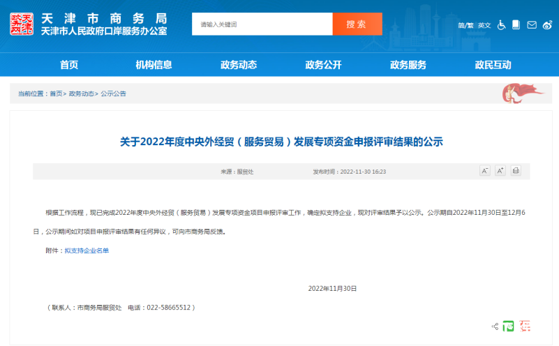 近日,天津市商務局公布了2022年度中央外經貿(服務貿易)發展專項資金的擬支持名單,由中汽中心工程院推薦的“天津智能網聯汽車關鍵技術公共服務平臺”項目在列,獲得發展專項支持!