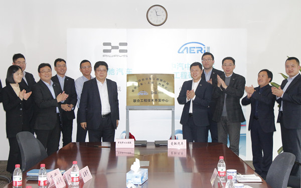 2018年3月23日,中汽中心汽車工程研究院(以下簡稱“工程院”)與愛馳汽車(上海)有限公司(以下簡稱“愛馳汽車”)成立“聯合工程技術開發中心”簽約和揭牌儀式在工程院舉行。出席揭牌儀式的領導有愛馳汽車首席技術官王東晨、品牌公關副總裁金新、整車開發副總裁李林和智能網聯總監李立安以及中汽中心副總經理吳志新、中汽中心汽車工程研究院副院長龔進峰、副院長馬杰及工程院各部門負責人。