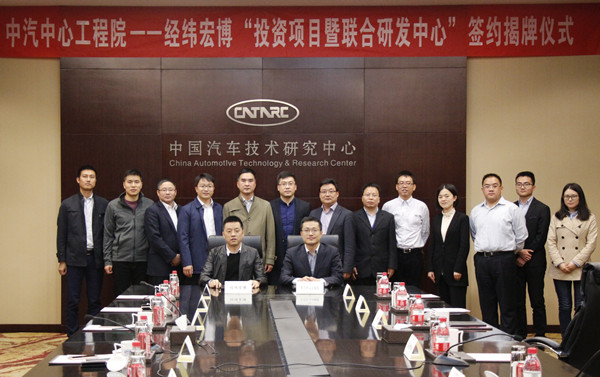 2017年4月7日,中國汽車技術(shù)研究中心(下稱“中汽中心”)汽車工程研究院(下稱“工程院”)與江蘇經(jīng)緯宏博汽車零部件股份有限公司(下稱“經(jīng)緯宏博”)“投資項目暨聯(lián)合研發(fā)中心”簽約揭牌儀式成功舉行。江蘇省常州市金壇經(jīng)濟開發(fā)區(qū)副書記王勇、金壇區(qū)紀(jì)委主任蔣志軍、金壇區(qū)經(jīng)貿(mào)局局長黃建南,經(jīng)緯宏博董事長王金芳、經(jīng)緯宏博總經(jīng)理蔡雨宏,中汽中心工程院院長高繼東、副院長龔進峰、總工程師李洪亮,璦睿投資管理有限公司總經(jīng)理胡濟民,常州開發(fā)部主任田涌君等領(lǐng)導(dǎo)參加了儀式。