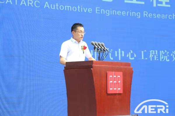 接著,企業嘉賓代表,國家智能網聯汽車創新中心主任、國汽(北京)智能網聯汽車研究院有限公司總經理嚴剛為儀式致辭,他談到高郵院建設的能力重點是智能網聯汽車整車及系統性能開發與測試,技術方案在國內外均處于領先水平,是探索完善智能網聯汽車測試評價與研發驗證技術的重要手段。他表示,高郵院的建設將進一步促進中汽中心與行業企業之間合作的深度與廣度,深化中汽中心與國汽智聯的戰略合作伙伴關系,共迎機遇與挑戰。