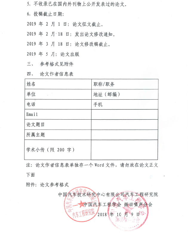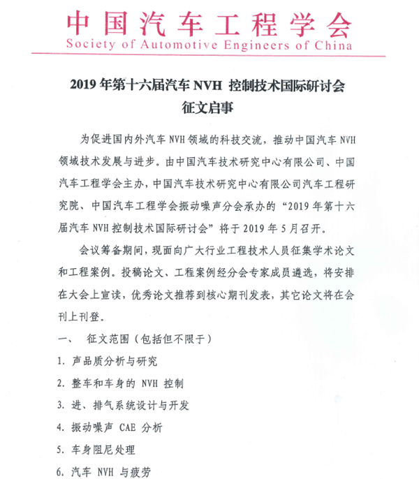 2019年第十六屆汽車 NVH 控制技術(shù)國(guó)際研討會(huì)征文啟事