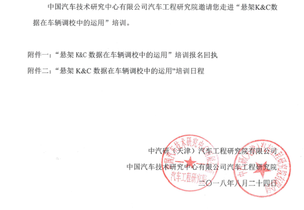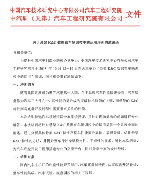 關于懸架K&C數據在車輛調校中的運用培訓的邀請函
