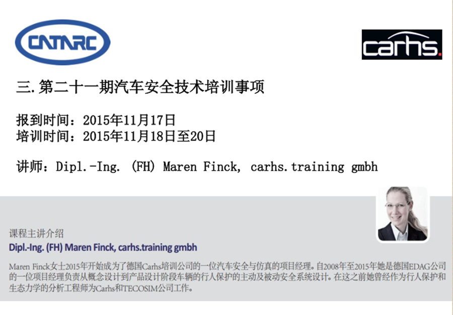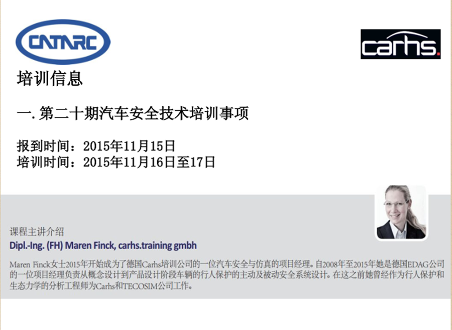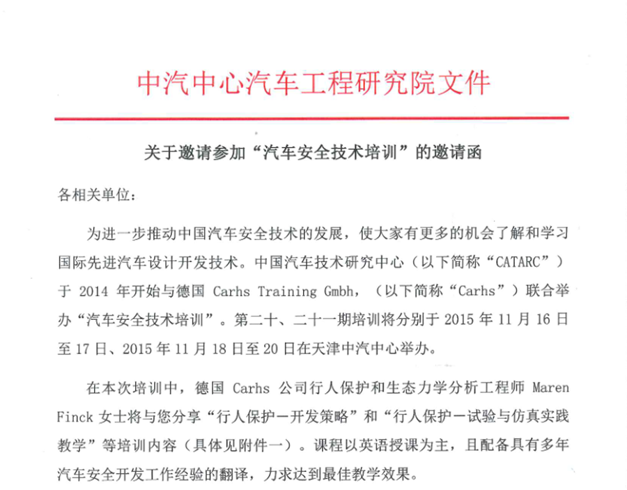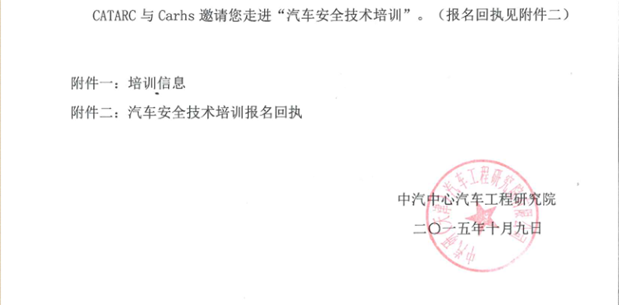 2015年汽車安全技術培訓(第二十期、二十一期)的邀請函