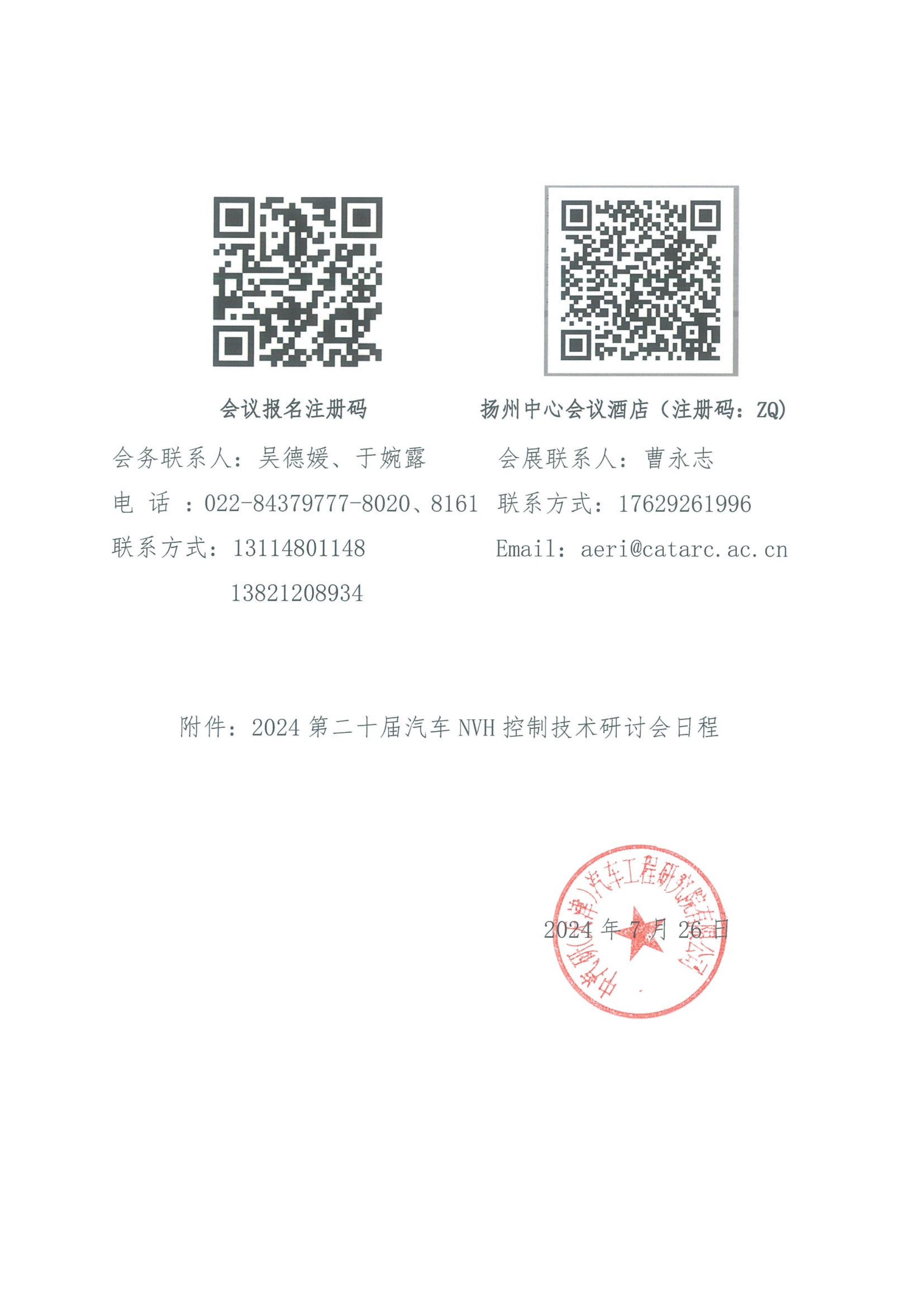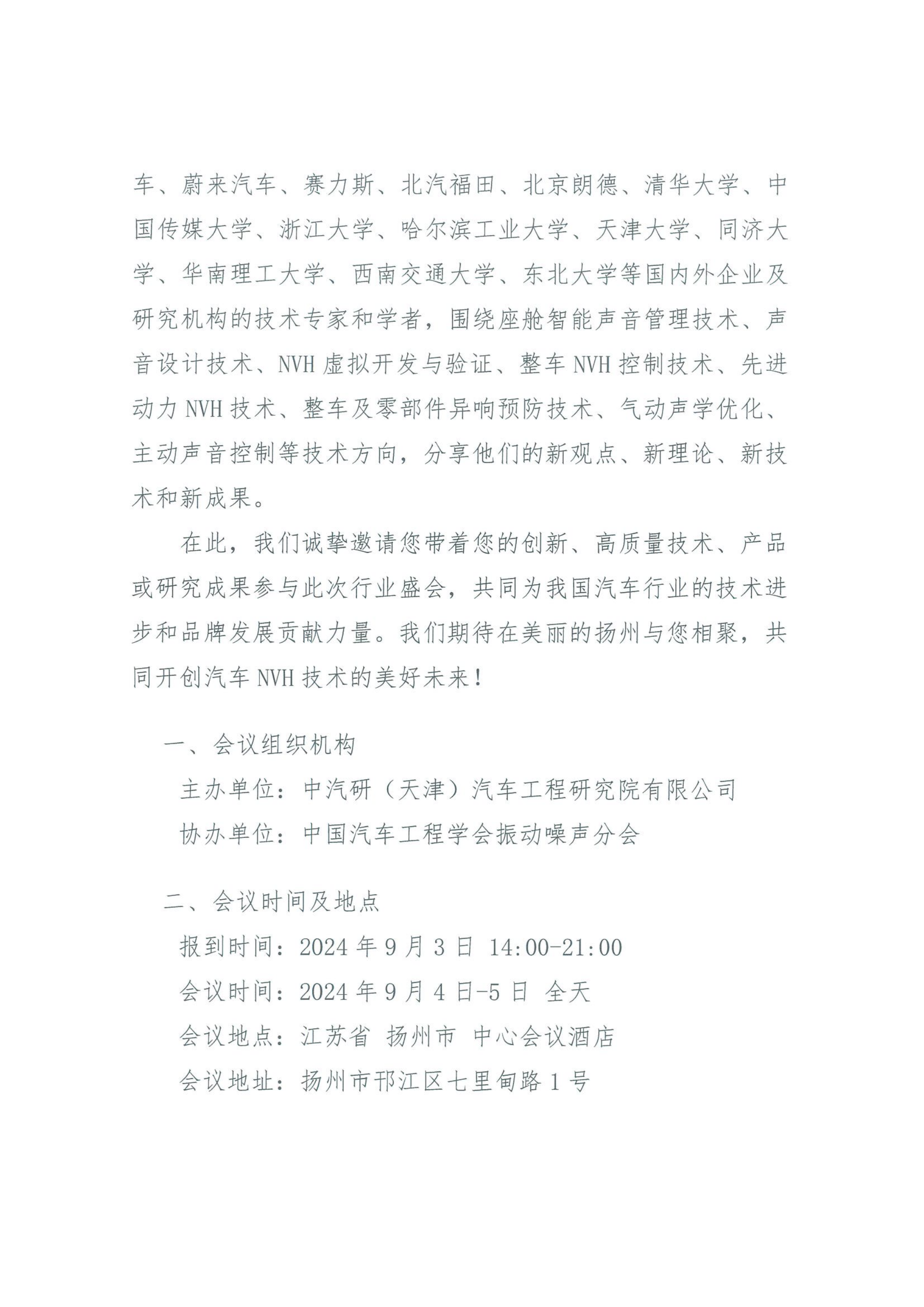 關于舉辦“2024第二十屆汽車NVH控制技術研討會”的通知