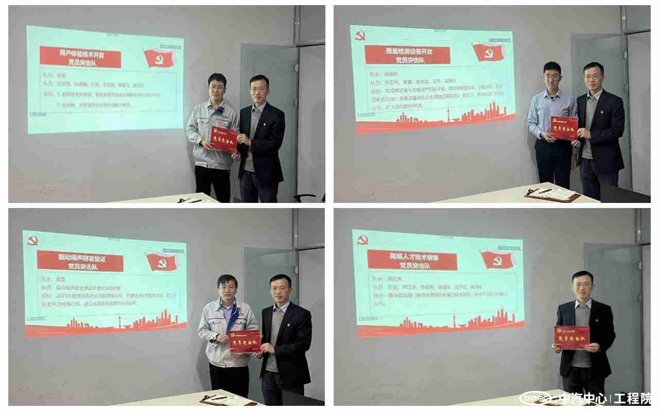 會上,圍繞部門2023年發展計劃和工作目標,成立了“用戶體驗技術開發、質量檢測設備開發、振動噪聲研發驗證、高端人才技術銷售”4支黨員突擊隊。陳達亮為黨員突擊隊隊長授旗。